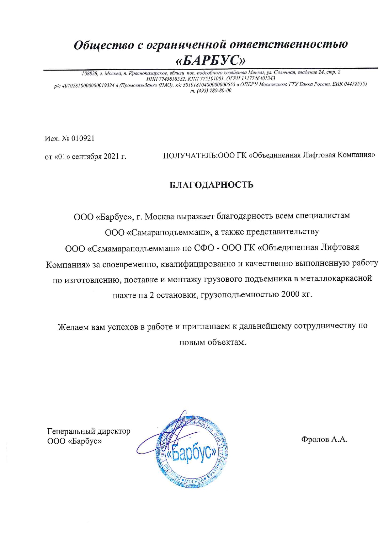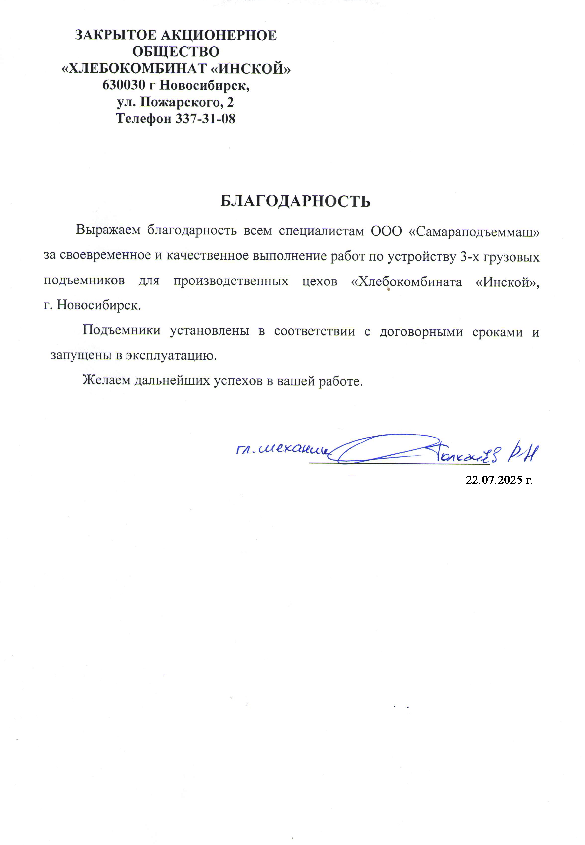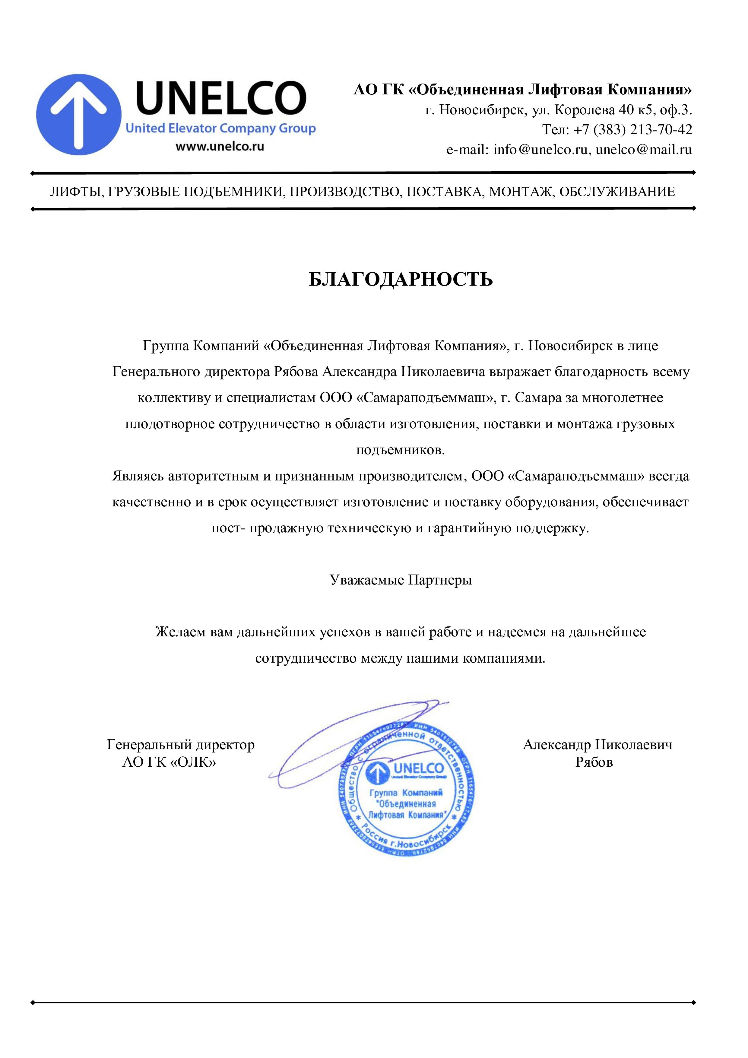 Желаем всем специалистам ООО "Самараподъёммаш" и АО ГК "Объединённая Лифтовая Компания" успехов в дальнейшей работе и приглашаем к дальнейшему сотрудничеству.