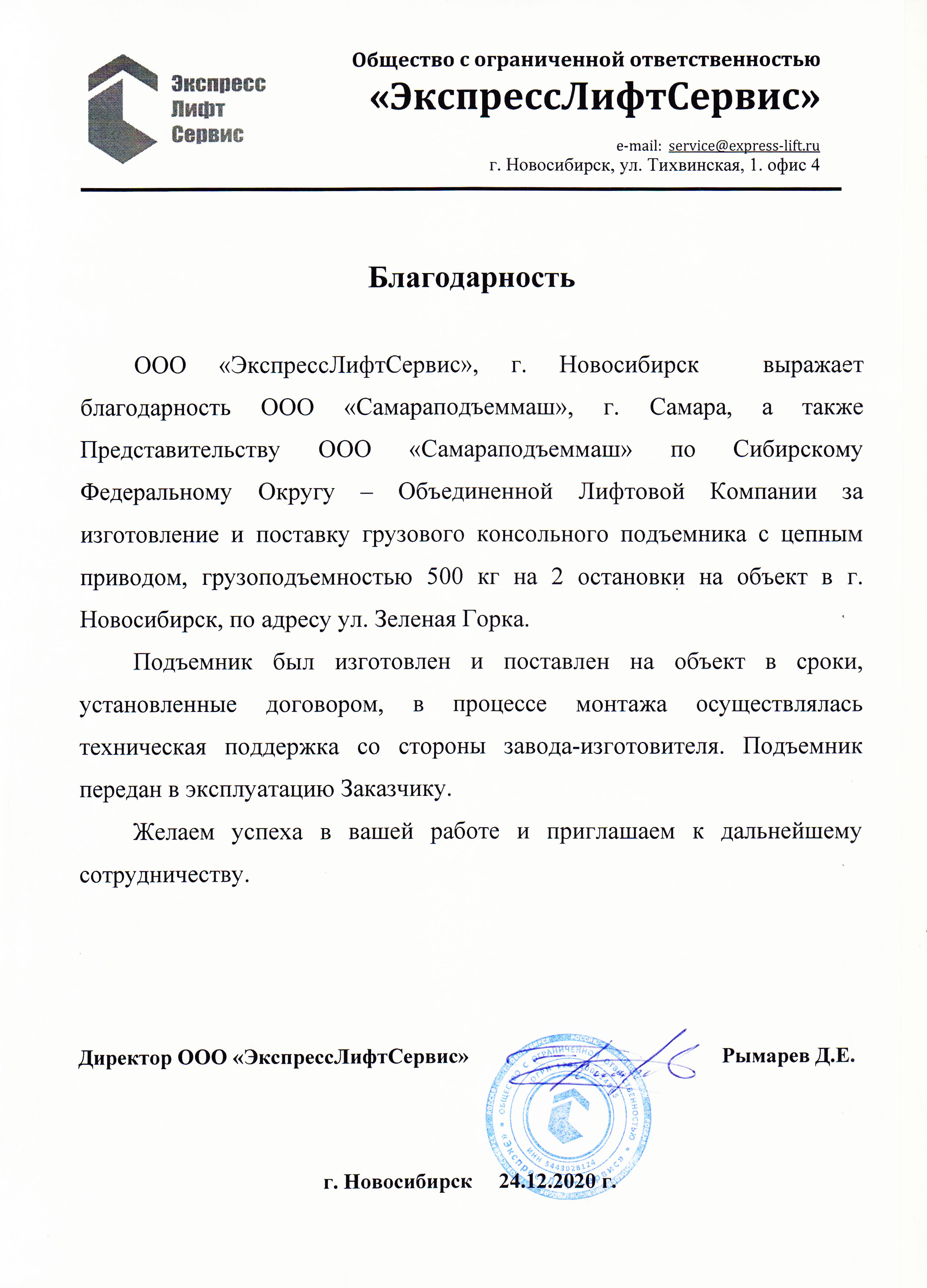 Все работы выполнены в установленные и согласованные сроки, подъемник изготовлен, смонтирован и принят в эксплуатацию.