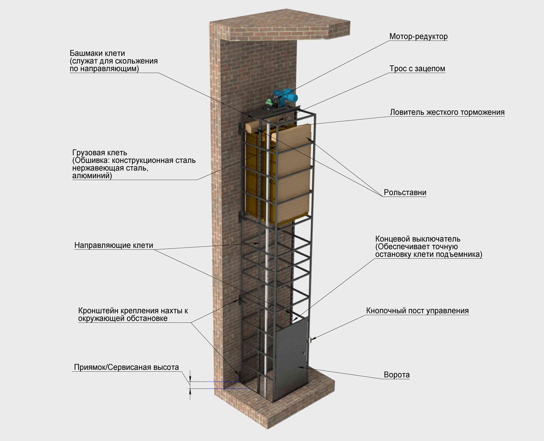 Подъемник малогрузовой в готовую шахту ПмГ-ГШ