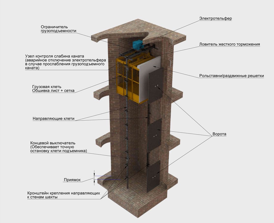 грузовой подъемник в готовую шахту пг- гш